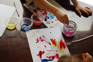 They had a great time. I think their favorite part was playing with the eye dropper. I would like to come up with some more activities where they can use the dropper. It got a little messy towards the end, but not bad. Dispensing the very thin paints with only an eyedropper seriously cut down on the volume of mess that could have been created. Paint smocks are a definite must, however. I used washable paints, so everything was a breeze for the kids to wipe up after they finished. Give it a try!